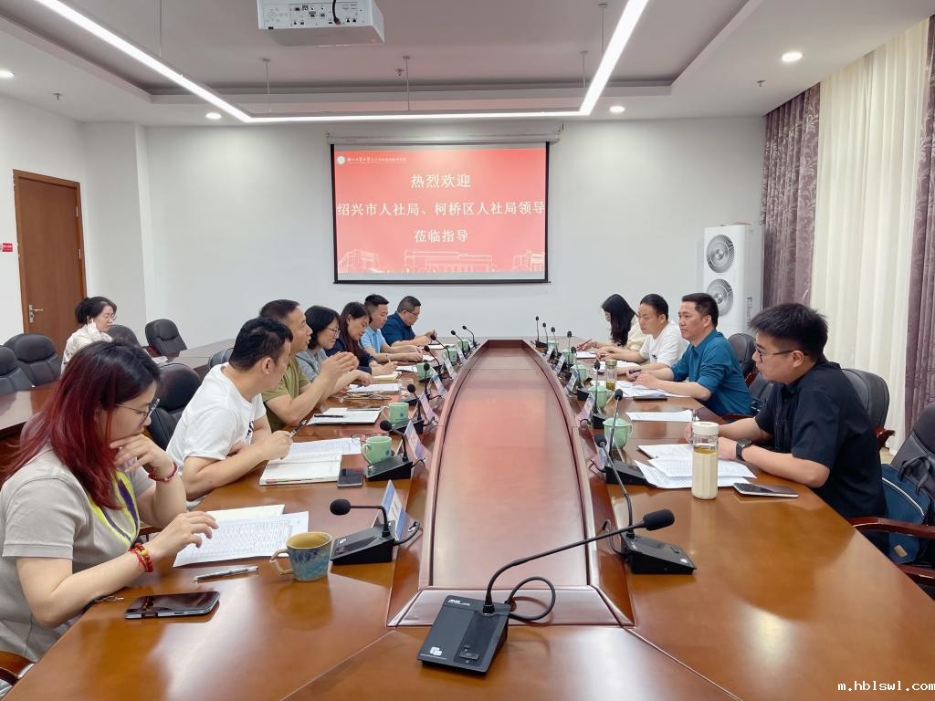 5月8日,绍兴市职业技能开发指导中心主任吴金山、评价指导科科长钱赛斌、培训管理科科长童骁及柯桥区人社局职业能力建设科科长相圣洁一行,莅临我院开展指导职业培训与技能等级认定工作的专项指导。继续教育学院院长兼书记董勇、副院长肖熙,以及商学院、信息学院、人文学院、机械学院、旅游学院等二级学院相关负责人参会。