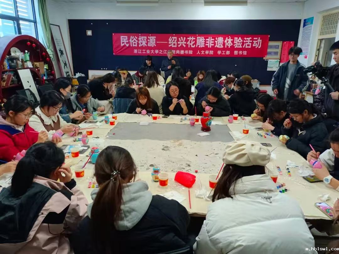 1月29日下午3点,在人文学院非遗传承基地,来自全院45位同学参加了民俗探源——绍兴花雕非遗体验活动。活动由尚德书院、学工部、人文学院和图书馆联合举办。
